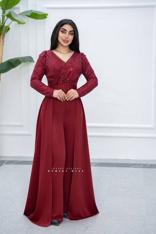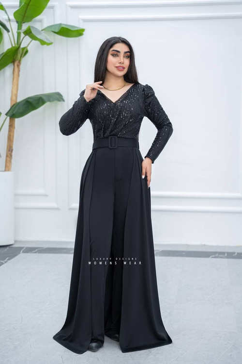 قد کار ۱۵۰ ( پشت کار پولک ندارد و زپیدار) دامن به شلوار وصله قابل جدا شدن نیست،کمربند دارد
