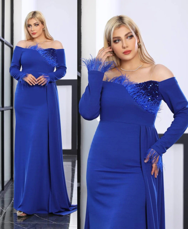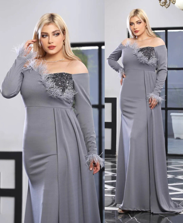 مدل نارشین جنس کرپ دو رو و پولک (بند دکلته دارد) پشت کار زیپدار