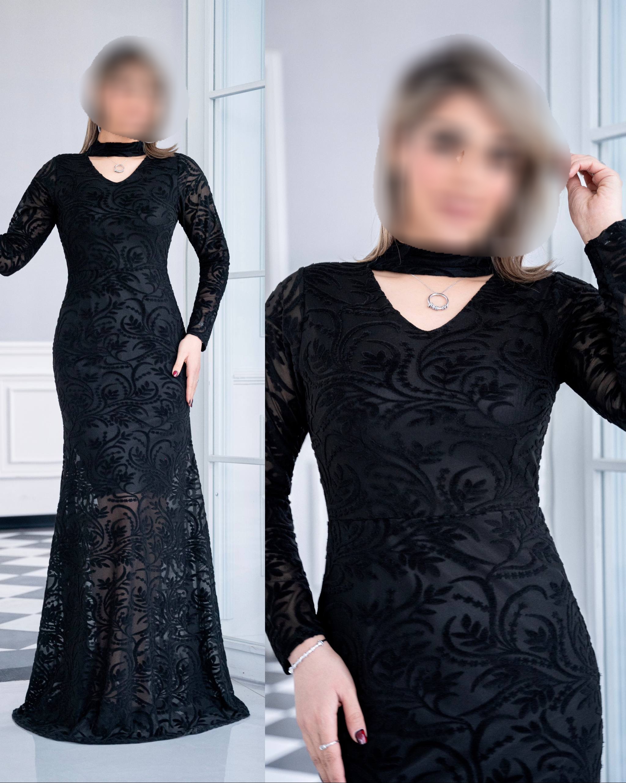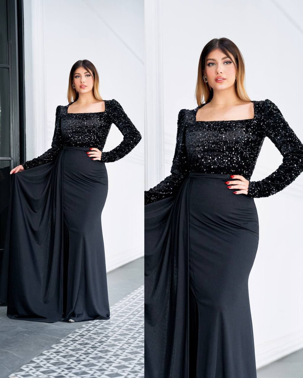 ماکسی هیلی جنس کرپ دورو و پولک مخملی